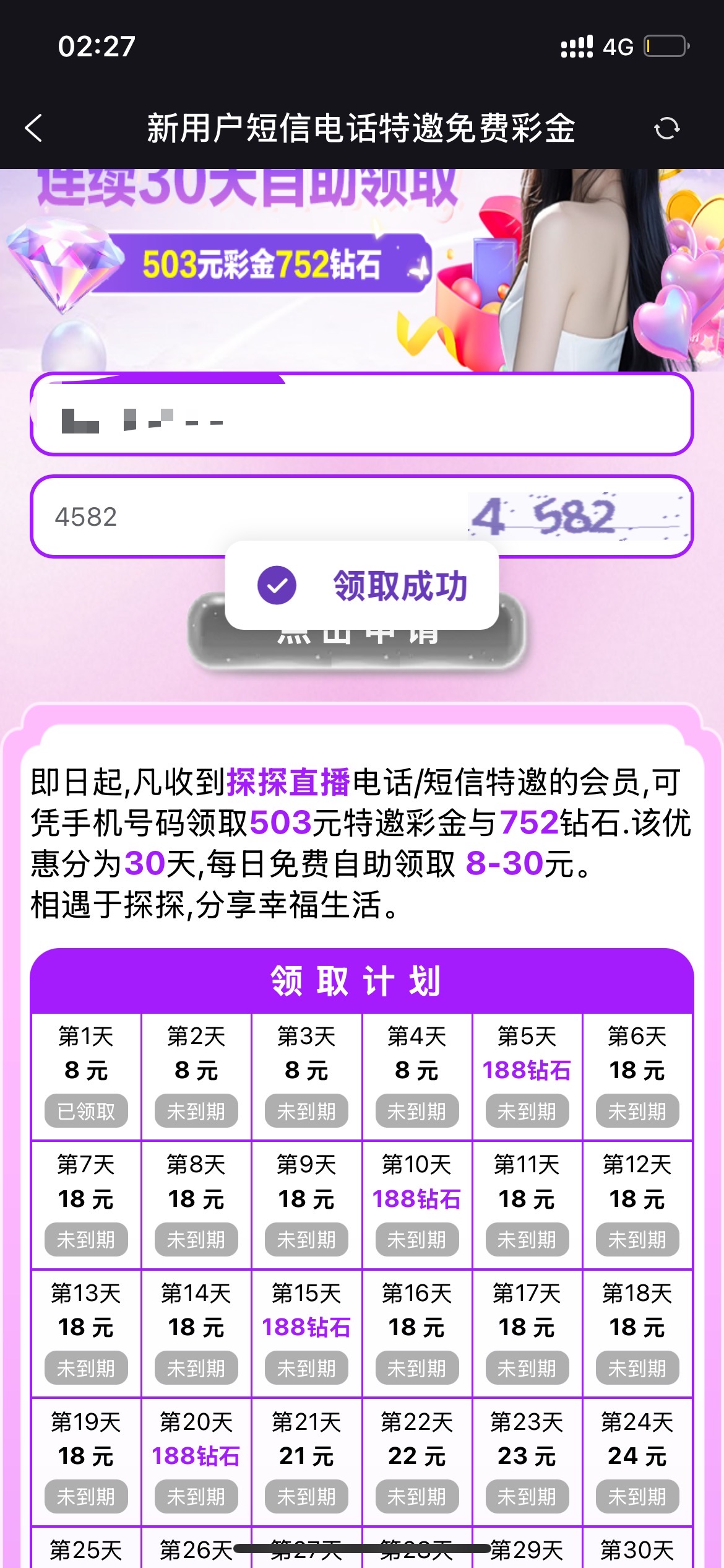 我没接到电话 单纯去碰的,自己看吧,可以领一个月