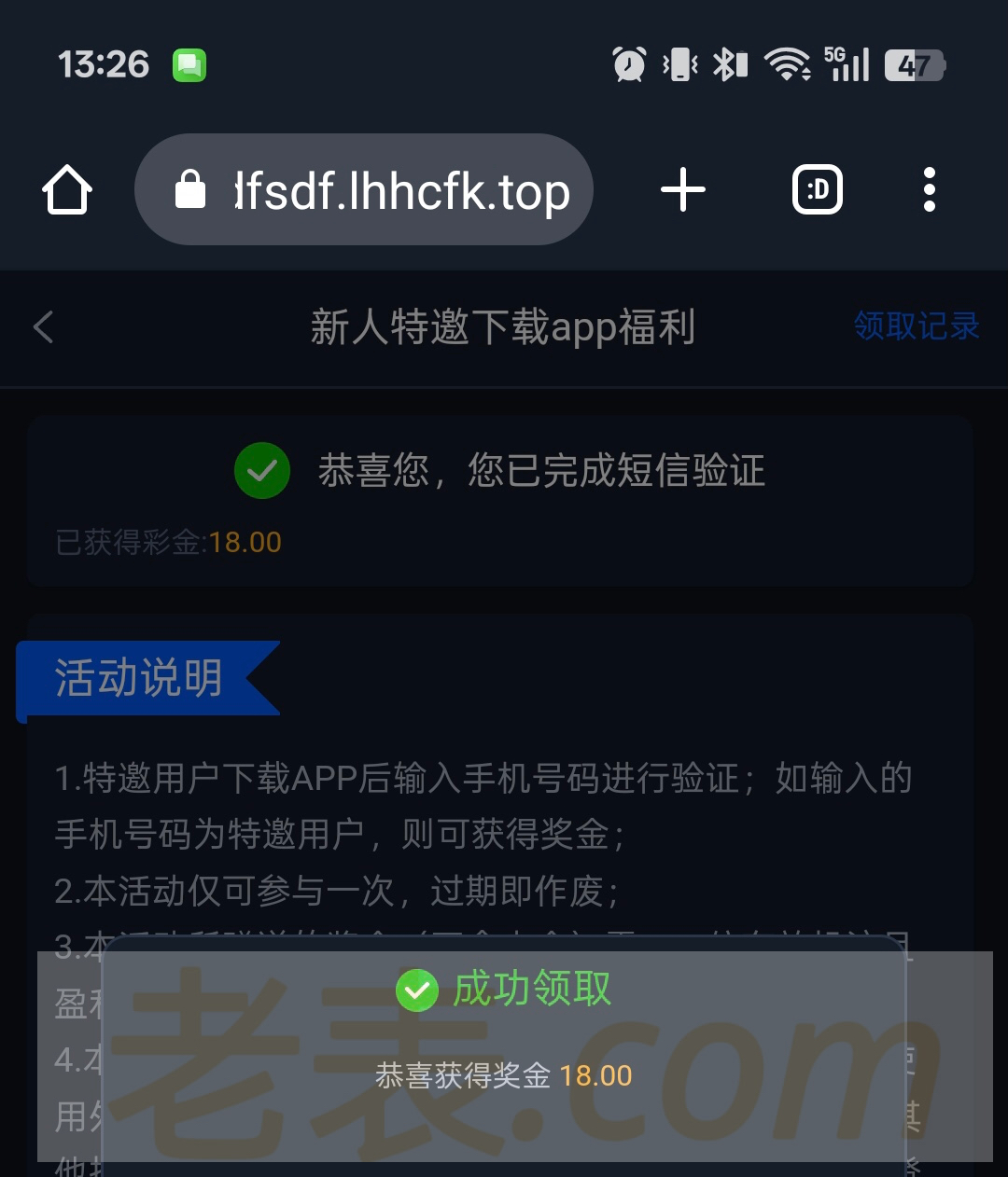 碰瓷短信彩金