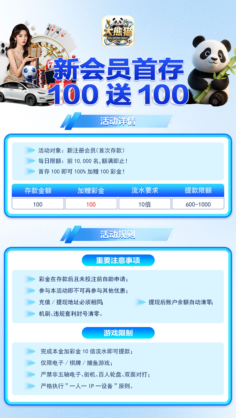 新用户100送100优惠大厅自助领取(具体规则看图)