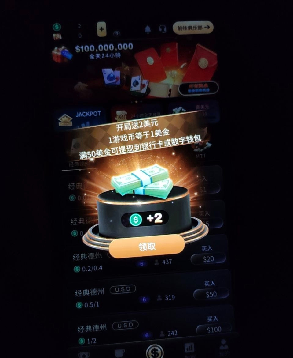 TTPOKER德扑 送2u 注册账号 直接到账2u彩金 彩金限制自行询问客服 满50u提现!